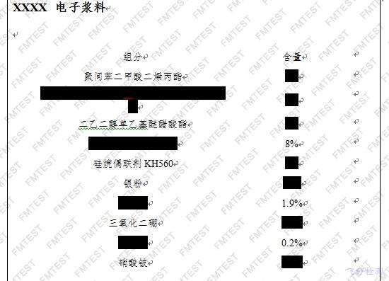 樣品:臺灣某科技公司,是國內最大的電子目前為國內擁有自主研發能力導電漿料專業開發廠,也是目前在技術及研發能力上能與日韓廠商相抗衡的專業漿料開發廠。客戶找到我們飛秒檢測,委托我司為其提供的電子漿料樣品進行全成分分析,并給出相應含量,幫助還原出市場最有競爭力的產品。