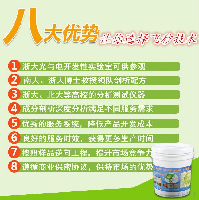2017年1月初,飛秒技術(shù)接到迎來了一位尊貴的客戶,該客戶是從事多彩涂料生產(chǎn)的企業(yè),客戶希望借助飛秒檢測的技術(shù)實力,檢測出一款日本進口的多彩涂料。該調(diào)料以環(huán)保、價格低作為賣點。客戶希望確認該產(chǎn)品的具體配方,同時也要求飛秒技術(shù)幫助開發(fā)該涂料的生產(chǎn)配制技術(shù),完善生產(chǎn)流程!飛秒檢測技術(shù)經(jīng)過5個月的奮戰(zhàn),終于于6月底完成效果驗證合格,其中出現(xiàn)了很多問題,比如原料不好購買,剛開始配制的小樣出現(xiàn)分層,介質(zhì)絮凝等問題,但都被飛秒技術(shù)導(dǎo)師一一攻克!