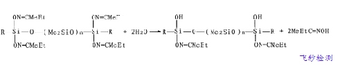 2)第二類防霉劑:可將 100 份粘度 (25 ℃ ) 20 000 mm 2 /s 的α , ω - 二羥基聚二甲基硅氧烷、 2.0 份環(huán)己酮肟、 2.0 份銳鈦型二氧化鈦及 10 份經(jīng)二甲基二氯硅烷處理的氣相法白炭黑在行星攪拌器中、 隔濕條件下混合 , 配成膠料 ; 然后 , 加入 5.0 份甲基三乙酰氧基硅烷 , 減壓下室溫混合 , 配成防霉性脫醋酸型單組分 RTV 硅橡膠密封劑。進(jìn)行防霉實(shí)驗(yàn),與不加防霉試劑的有機(jī)硅密封膠相比, 有較好的防霉效果。上述配方中 , 用 1.2 份二甲基乙二肟代替 2.0 份環(huán)己酮肟配成的密封劑 , 防霉效果相同。