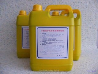鍋爐除垢劑顧名思義指的是能清除鍋爐內(nèi)部水垢的一種化學(xué)藥劑,可以溶解碳酸鈣、碳酸鎂、硫酸鈣、硅酸鈣及氧化鐵等水垢成份;對金屬無腐蝕、無毒、快速、徹底清除附著在鍋爐內(nèi)壁的水垢。適用于電鍋爐除垢、燃油鍋爐 除垢、燃氣鍋爐除垢、燃煤鍋爐除垢、開水爐除垢、熱水鍋爐除垢,采暖鍋爐除垢、浴池鍋爐除垢、蒸汽鍋爐除垢及板式換熱器除垢等。