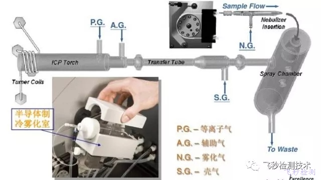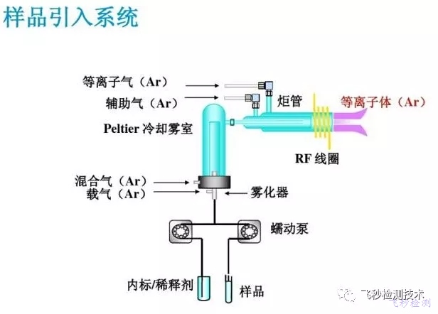 進樣系統由蠕動泵、霧化器、霧室和排廢液系統等部分組成,進樣系統最先接觸樣品基體,因而是ICP-MS中需要很多維護和注意的地方。