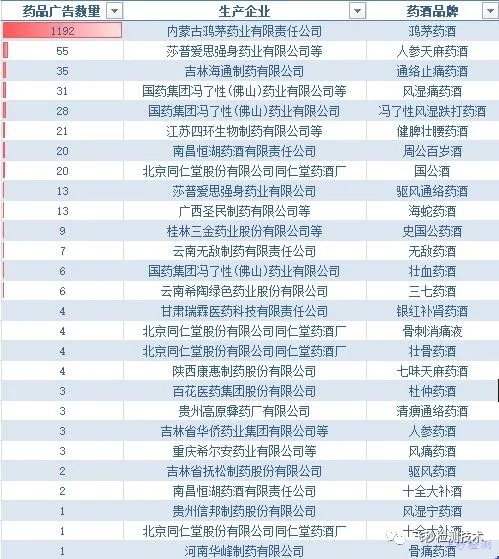 經(jīng)過小編整理后,發(fā)現(xiàn)一個有趣的情況:通過上圖可以看到,鴻茅藥酒廣告數(shù)量是1192條,是其他所有藥酒品牌廣告總和(299條)的3.98倍。