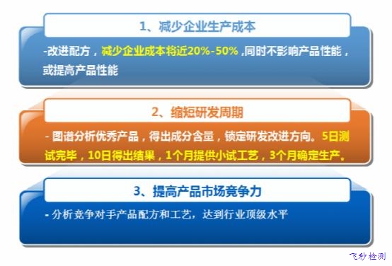 3.縮短周期:通過成分還原樣品主要配方成分,明確配方中重要成分,減少實(shí)驗(yàn)次數(shù),達(dá)到加速研究周期,減少開發(fā)成本的目的。